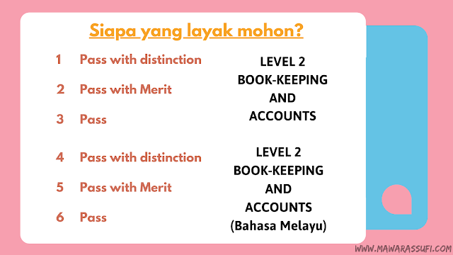 Sesiapa saja yang ambil subjek Prinsip Akaun dalam SPM dan mendapat kelulusan yang melayakkan awak untuk dapat sijil ni, awak boleh mohon untuk dapat sijil ni. Ini dapat bantu support awak ketika nak mencari pekerjaan satu hari nanti.